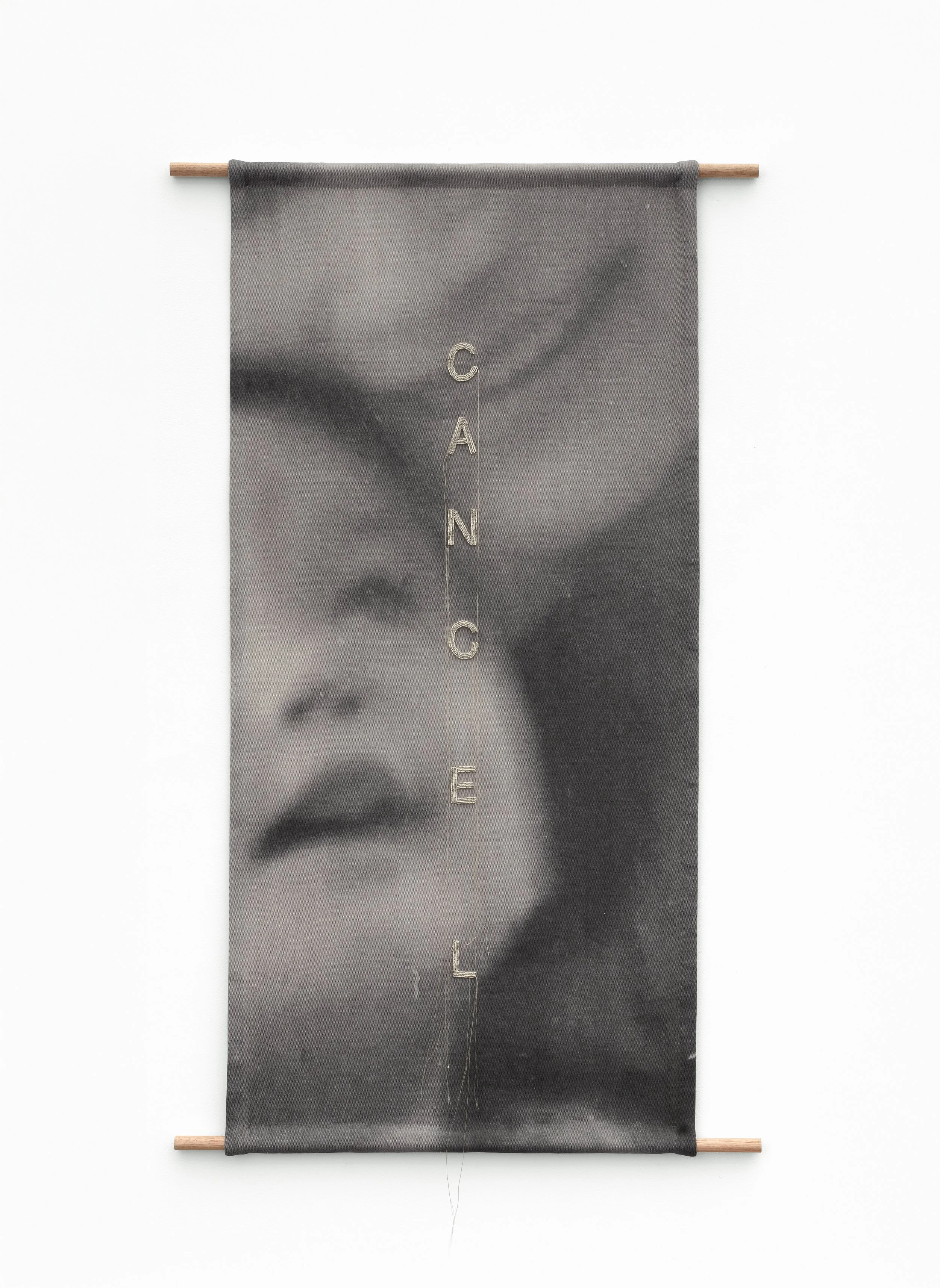 Japanese Glass Bead, Metallic Thread on Printed Hemp